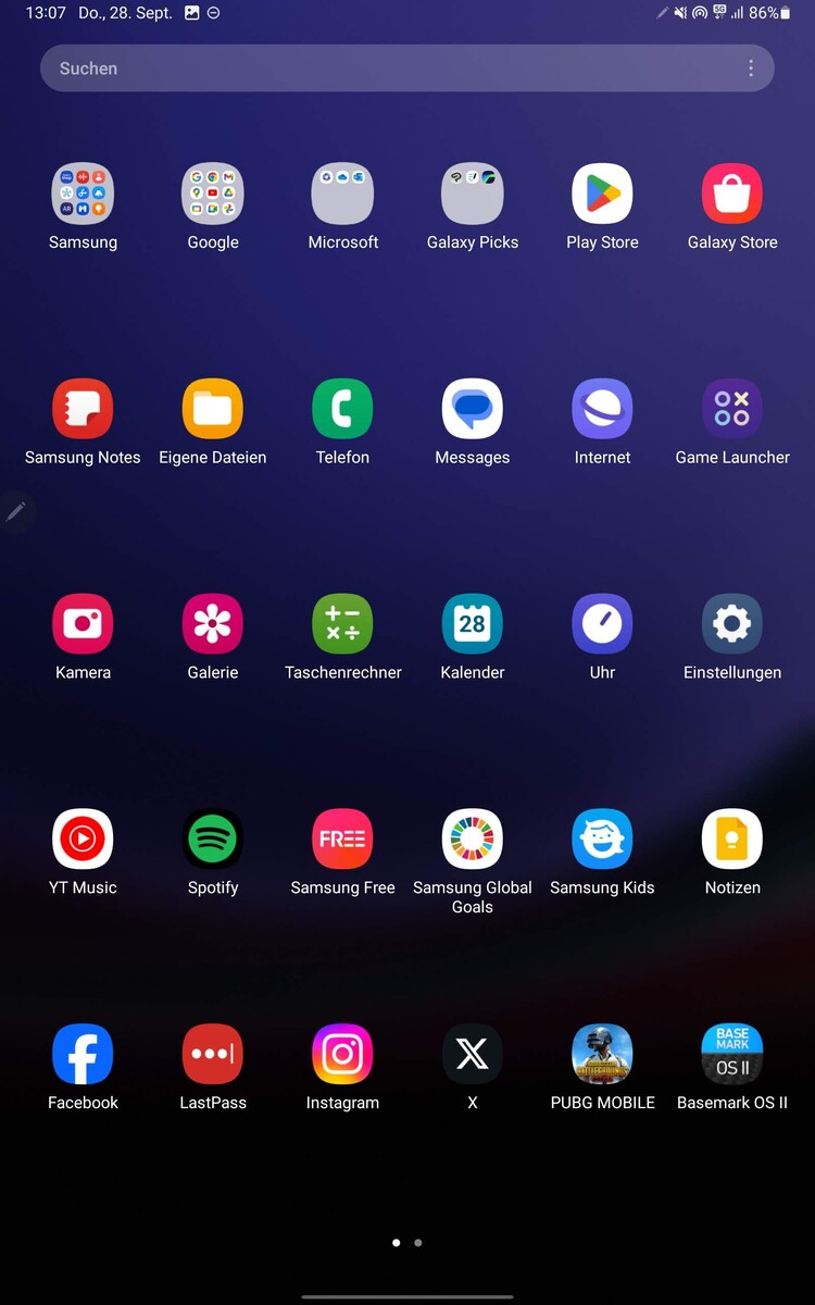 Veel apps van Samsung, Google en Microsoft zijn vooraf geïnstalleerd, waaronder dubbele apps zoals Agenda of de fotoweergave. Naast de software van deze grote bedrijven is alleen Spotify vooraf geïnstalleerd