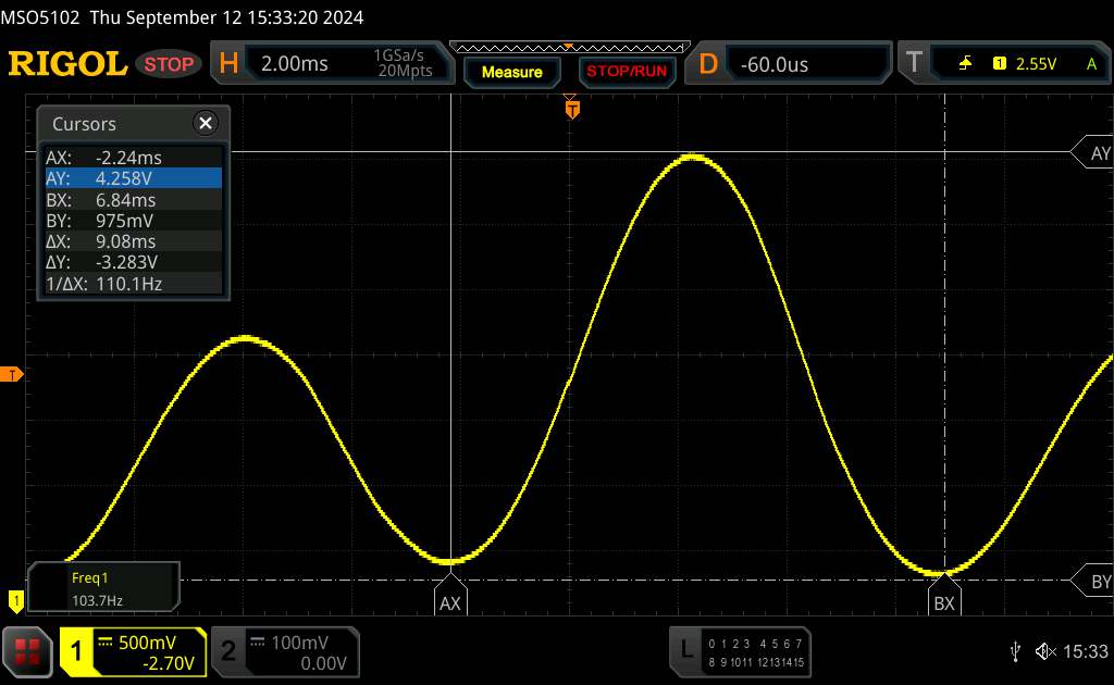 Vanwege de ingebouwde OLED-technologie gebruikt Samsung pulsbreedtemodulatie om de helderheid te regelen. We hebben een frequentie van 110 Hz gemeten voor het flikkeren van het scherm met de Rigol software (automatisch).
