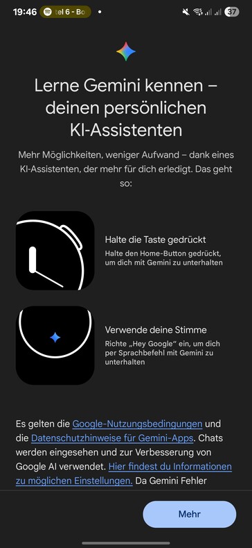 Tijdens het instellen kunnen gebruikers belangrijke opties configureren, zoals de snelle knop, valdetectie en polsoriëntatie. Aan het einde van het proces verschijnt een korte handleiding voor zowel de app als het horloge, en de spraakassistent Gemini van Google maakt ook een cameo tijdens het instellen.