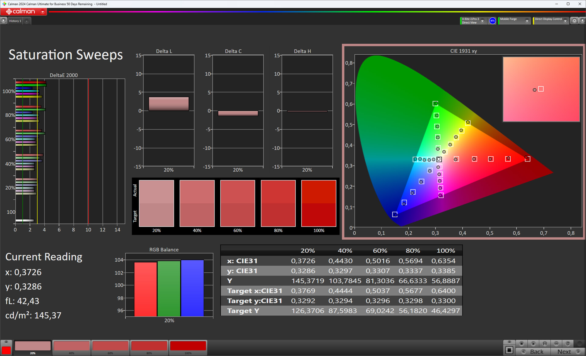 | Colorchecker dE 2000 * | 1.7 | 0.9 47% | 0.8 53% | 1 41% | 3.1 -82% |