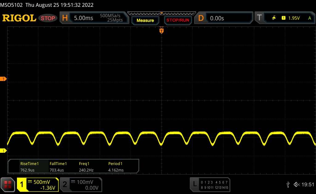 Door de OLED-technologie zijn beide panelen van de vouwbare niet vrij van schermflikkering. We meten een lage PWM-frequentie van 120 Hz bij minimale helderheid. Wanneer de helderheid van beide schermen wordt verhoogd, vlakt het flikkeren af op een constante 240 Hz. Voor gevoelige gebruikers kunnen zulke lage frequenties problematisch worden, ook al werkt het constante flikkeren hetzelfde als bij DC-dimmen. In onze Temporal Dithering test vertoont de Fold4 geen opvallend gedrag. In deze test bekijken we het scherm met een microscoop die een 240-fps slow motion video afspeelt op volle helderheid met een grijze achtergrond.