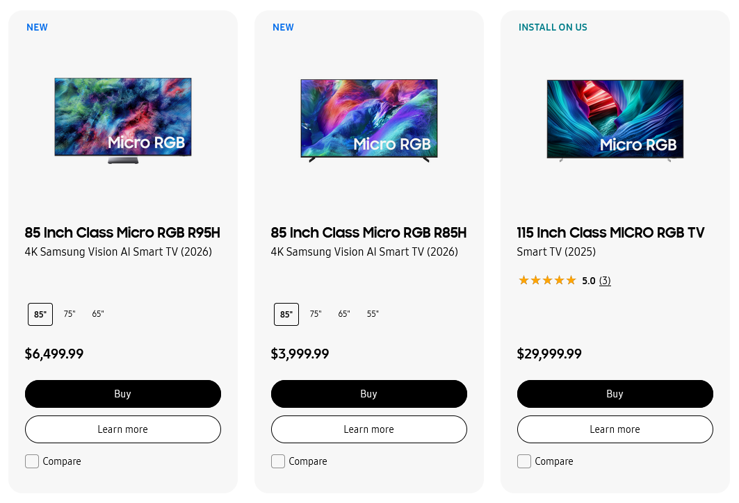 Samsung Micro RGB TV line-up 2026: Prijzen, specificaties en functies gedetailleerd beschreven
