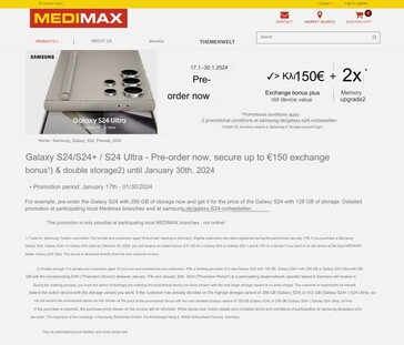 De lancering van de Galaxy S24-serie is nog maar een paar uur van ons verwijderd. Desalniettemin zijn de Galaxy S24 en Galaxy S24 Ultra onlangs gespot in een heleboel last-minute retailer lekkenwaaronder verschillende hands-on unboxing video's van de laatstgenoemde. Bovendien heeft Roland Quandt gezien dat Medimax, een dochteronderneming van ElectronicPartner, iets te vroeg was met het weergeven van de lanceringsaanbiedingen van de Galaxy S24-serie.