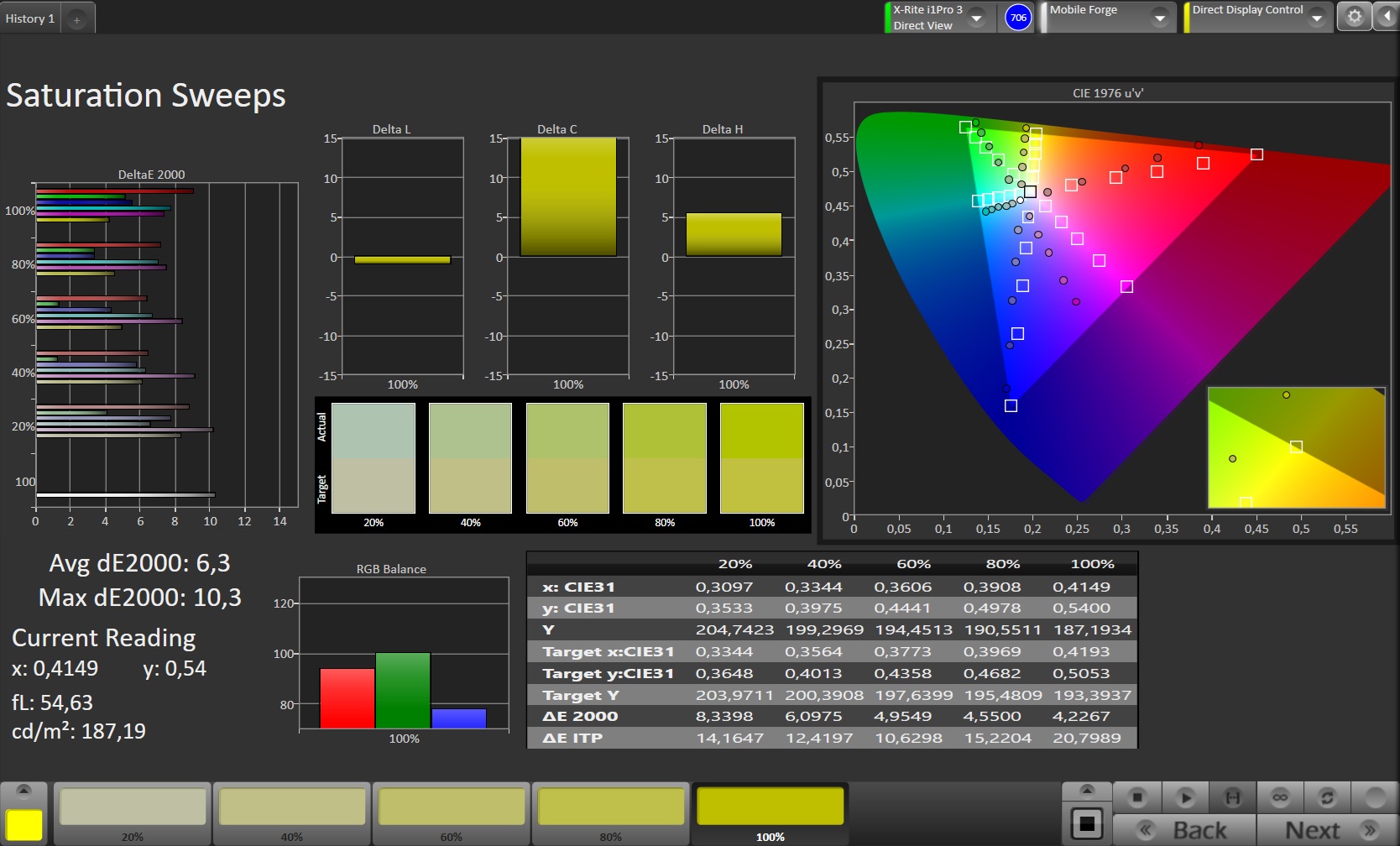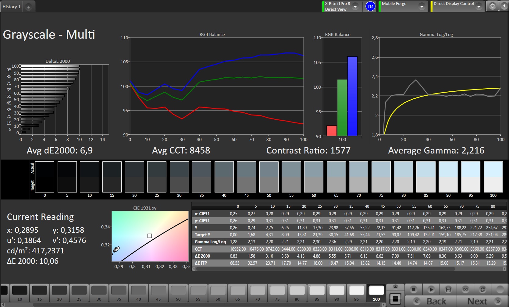 (±) | lineariteit van de middentonen is gemiddeld (7.3% delta ten opzichte van de vorige frequentie)
