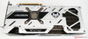 De beschikbare poorten zijn de bekende standaard in deze prestatieklasse. Dat betekent 3x DisplayPort en 1x HDMI. Voor de voeding vraagt de triple-slot grafische kaart om twee 8-pins standaard connectoren.