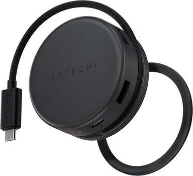 Zoals de naam al doet vermoeden, is de Satechi OntheGo 7-in-1 USB-C Hub een compacte USB-C hub voor mobiel gebruik, met een paar unieke functies. Een daarvan is het nogal ongebruikelijke ontwerp. De zeven poorten zijn rondom het ronde apparaat geplaatst.