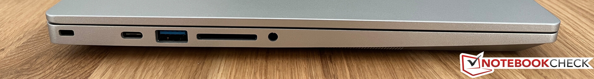 Er is weinig aan te merken op de poorten, want alles wat u nodig hebt voor het dagelijks leven is aanwezig. Dankzij een Thunderbolt 4 poort aan de rechterkant kunt u ook externe grafische kaarten aansluiten. In onze iGPU-variant ondersteunt de linker USB-C poort de Display Port ALT functie niet; dit werkt alleen in de Vision 14 met de Nvidia GPU. USB-C voedingen worden ondersteund (min. 65 watt, max. 100 watt).
