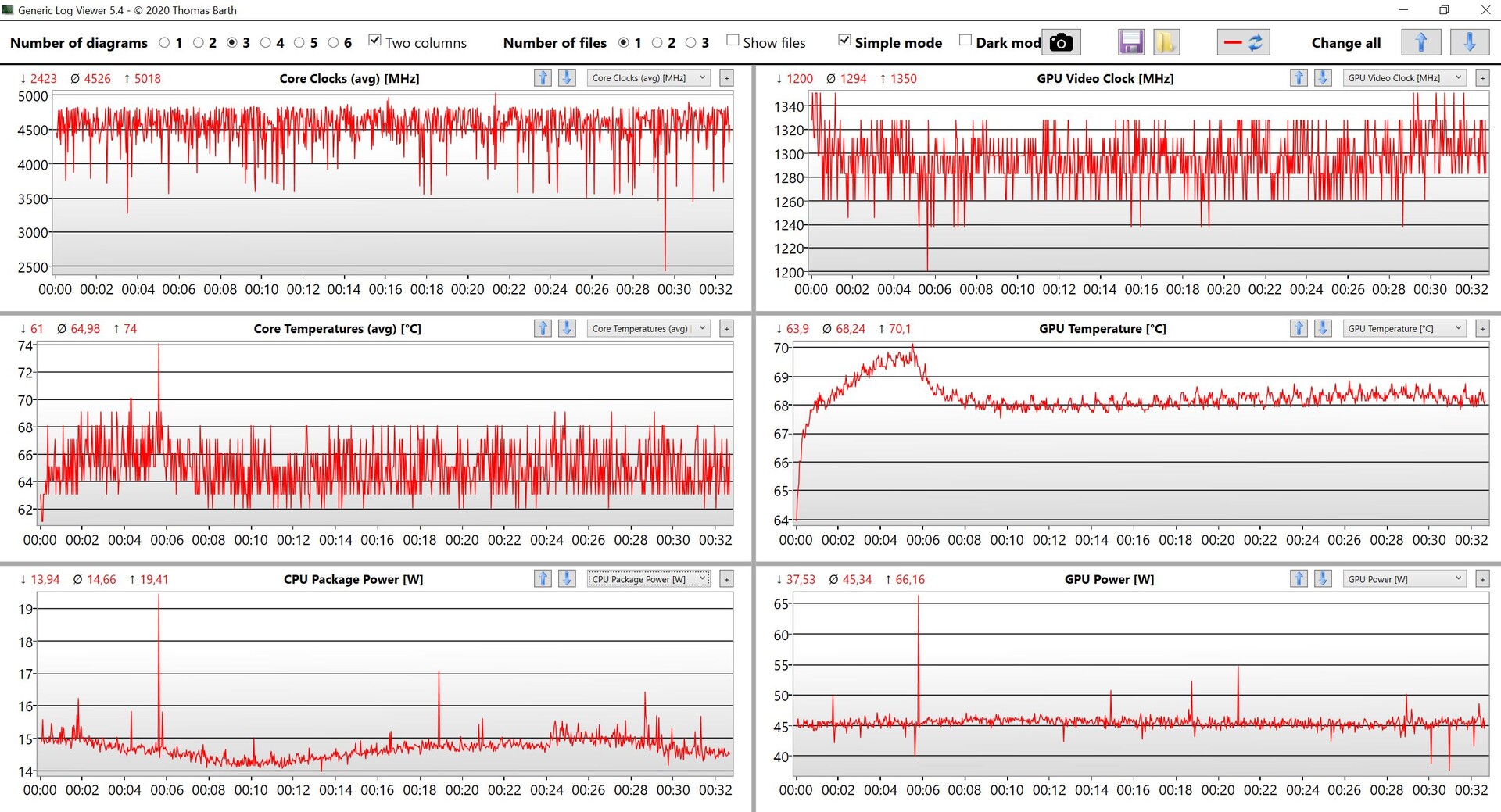 We hebben de stresstest uitgevoerd met de drie prestatieprofielen, en de resultaten zijn duidelijk zichtbaar in de schermafbeelding hieronder. Nadat de waarden na een paar minuten zijn afgevlakt, blijven ze volledig stabiel.
