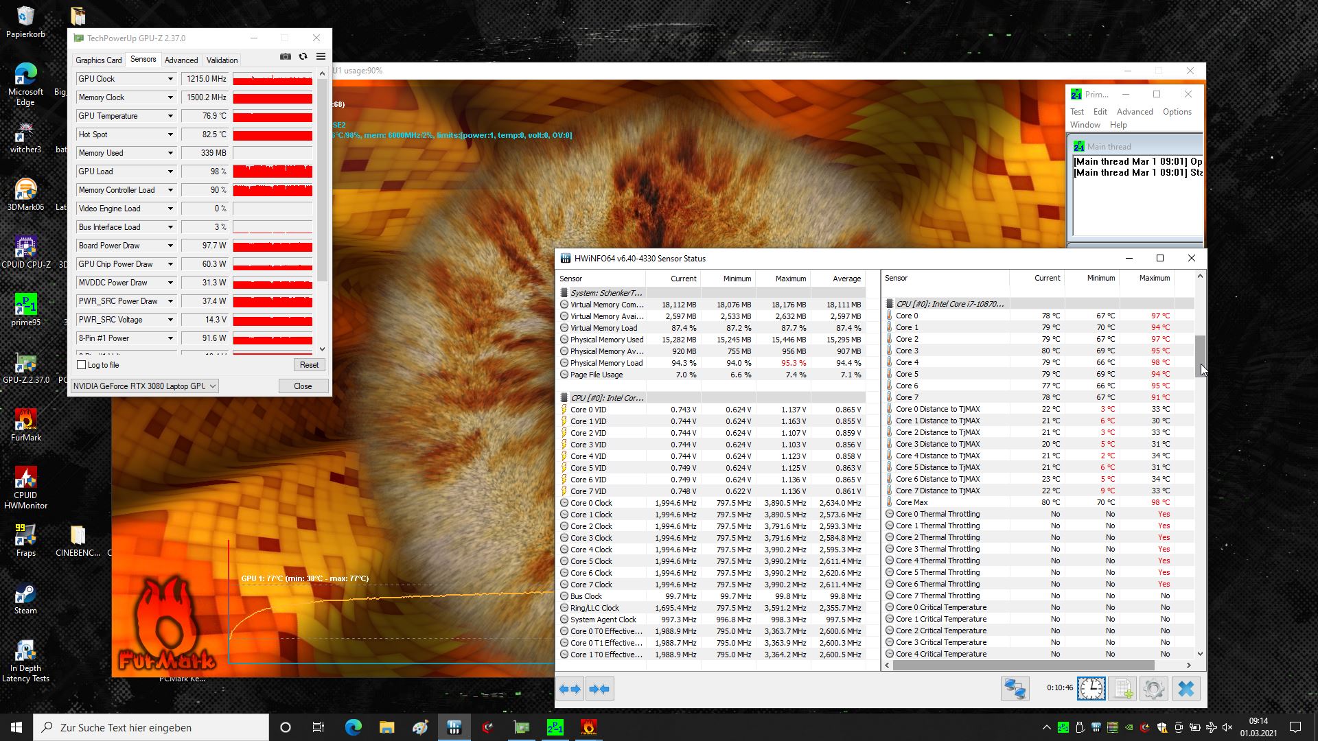 | 86 % v7 (old) | 03-2021 | Schenker XMG Pro 15 (Early 2021, RTX 3080) i7-10870H, GeForce RTX 3080 Laptop GPU | 2 kg | 19.8 mm | 15.60" | 1920x1080 | |