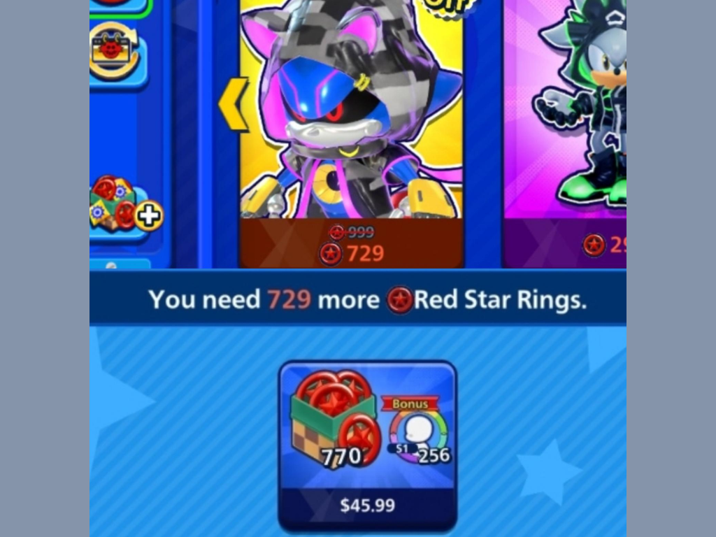 Spelers klagen dat Sega zich bezighoudt met "agressieve" monetariseringspraktijken. Op alle platforms melden spelers meerdere overlays en pop-ups waarin spelers worden aangespoord om skins te kopen. De skins in kwestie zijn behoorlijk duur, variërend van $40 tot $60. Het Neon Suit Sonic wordt bijvoorbeeld verkocht voor 999 Red Star Rings, wat meer dan $50 is. Afzonderlijke emotes in Sonic Rumble kosten 99 Red Star Rings, wat neerkomt op meer dan $10.