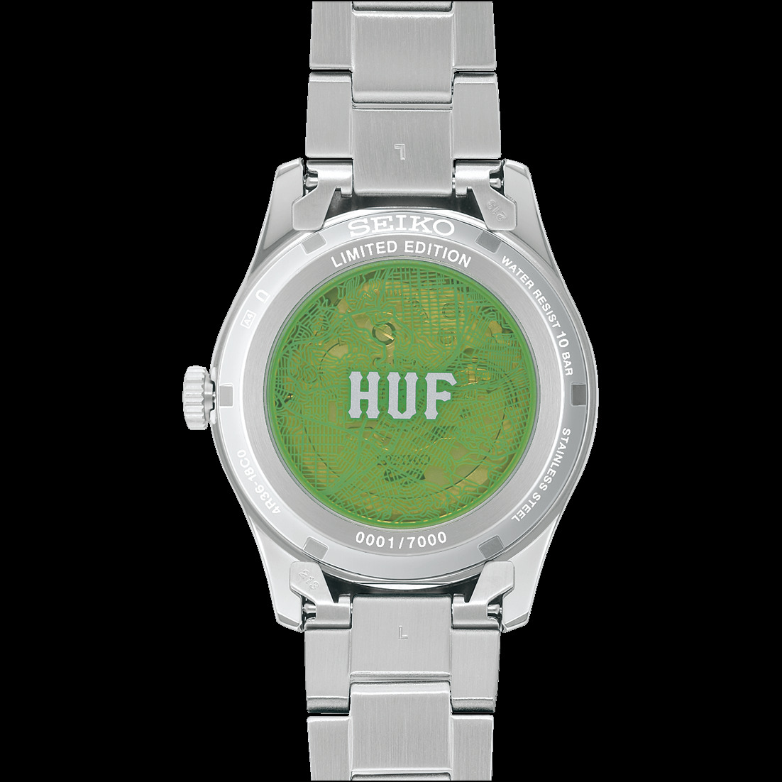 De SRPM09 wordt aangedreven door het automatische Caliber 4R36met een gangreserve van ongeveer 41 uur en ondersteuning voor handmatig opwinden en hacken. De achterkant van de tentoonstellingskast is getint in hetzelfde kenmerkende groen als de wijzerplaat en heeft een afbeelding die geïnspireerd is op San Francisco, waar het HUF-merk is opgericht. Het horloge is gekoppeld aan een roestvrijstalen horlogeband met een lugbreedte van 20 mm en wordt geleverd in een speciaal HUF-blik met een schoonmaakdoekje.