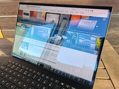 Acer gebruikt een 14,5 inch OLED-touchscreen (2.880 x 1.800 pixels, 16:10) met 120 Hz van Samsung. De basiskwaliteiten van OLED (levendige kleuren, hoge contrasten, snelle responstijden) zijn aanwezig, maar de touchscreen-laag resulteert in een duidelijk zichtbaar rastereffect, wat de subjectieve beeldkwaliteit sterk vermindert, vooral bij heldere inhoud. We hebben geprobeerd dit vast te leggen in de foto rechts, maar de camera verergert het probleem minimaal. Er is ook PWM-flikkering bij 240 Hz op elk helderheidsniveau. Zowel de helderheid als de kleurtemperatuur kunnen door een sensor geregeld worden. Het touchscreen is erg reflecterend, wat het gebruik ervan beperkt, vooral buitenshuis.