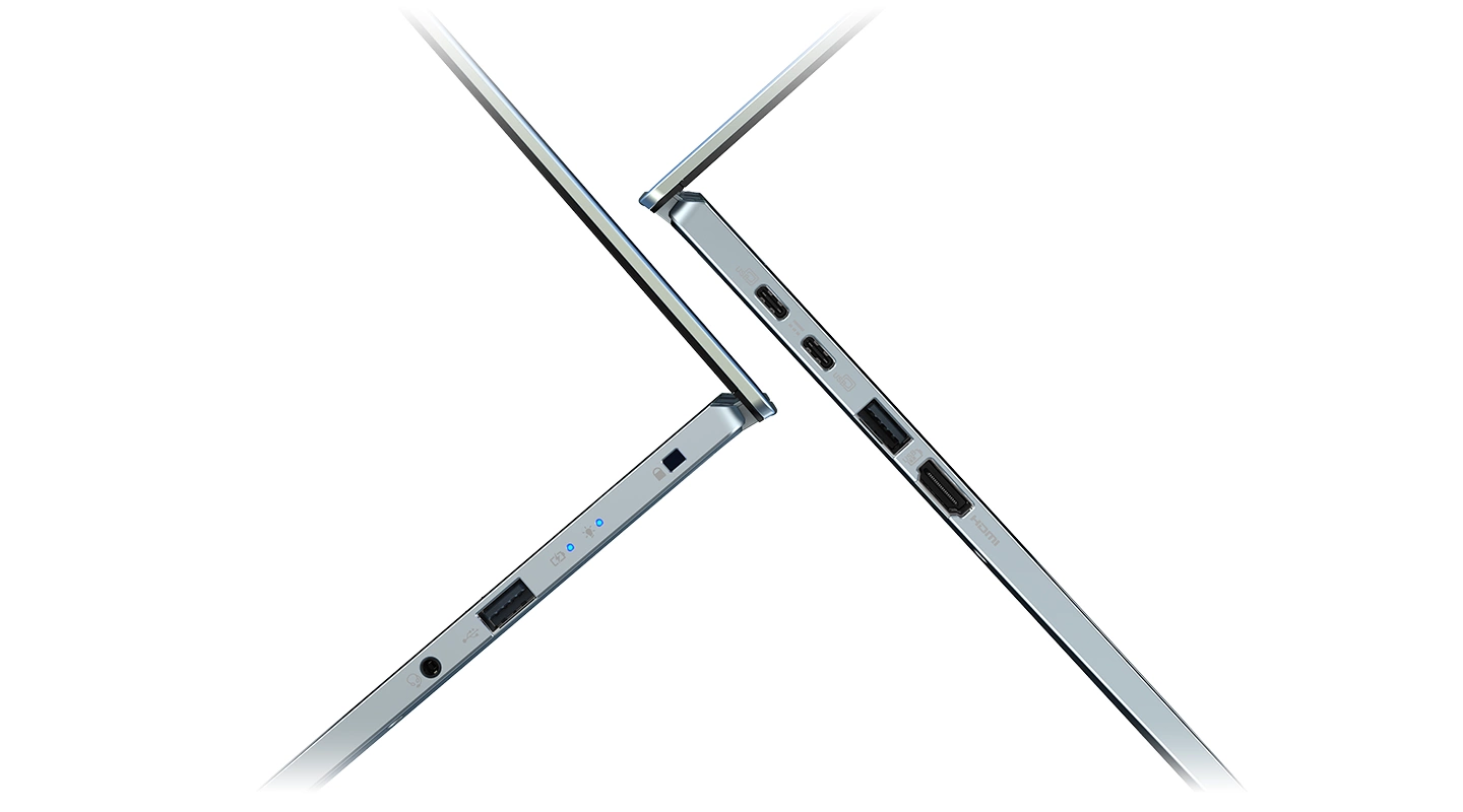 Gezien het slanke profiel is de Sift Edge niet voorzien van GbE aansluitingen, maar wel van snelle Wi-Fi 6E connectiviteit met Bluetooth 5.2 ondersteuning. De poortkeuze omvat twee USB-C 3.2 Gen 2, twee USB-A 3.2 Gen 1, een HDMI 2.1 video-uitgang en hoofdtelefoonaansluiting. Merk op dat de productpagina melding maakt van USB4 in plaats van USB-C 3.2, dus dit is mogelijk voorzien op de duurdere versies. De batterijcapaciteit wordt niet gespecificeerd, maar zou 7,5 uur moeten meegaan.