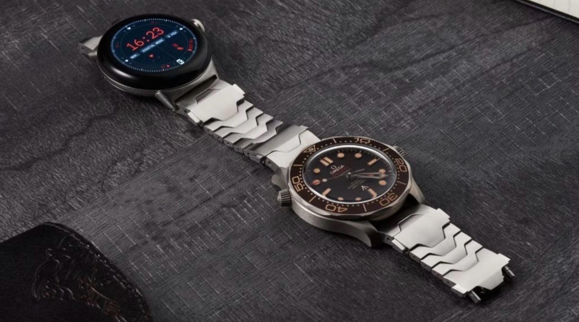 Smartlet One is een van de meer ongebruikelijke smartwatchbandjes op de markt, omdat het twee horloges tegelijk vasthoudt: een aan de bovenkant en een aan de onderkant van de pols. Hierdoor kunt u tegelijkertijd een analoog horloge en een smartwatch dragen, bijvoorbeeld een Apple Watch of een Whoop MG als fitnesstracker zonder de stijl van een analoog horloge op te offeren.