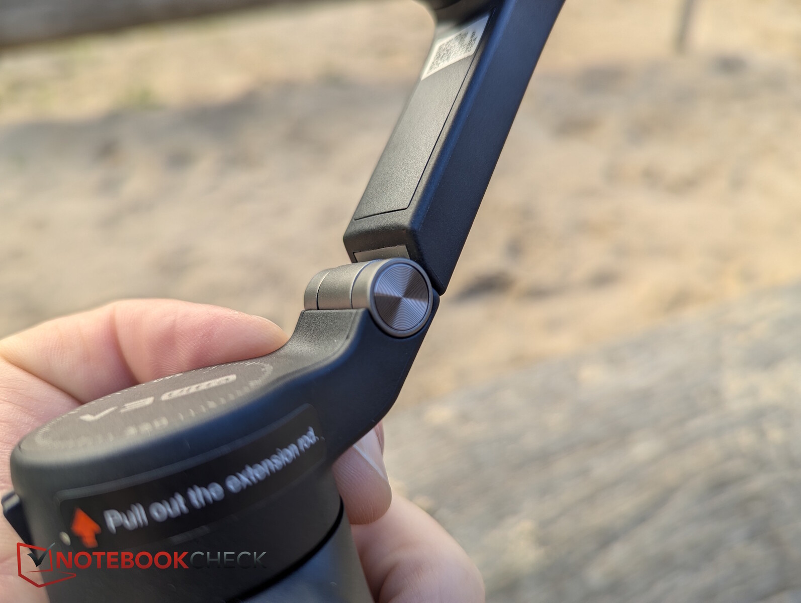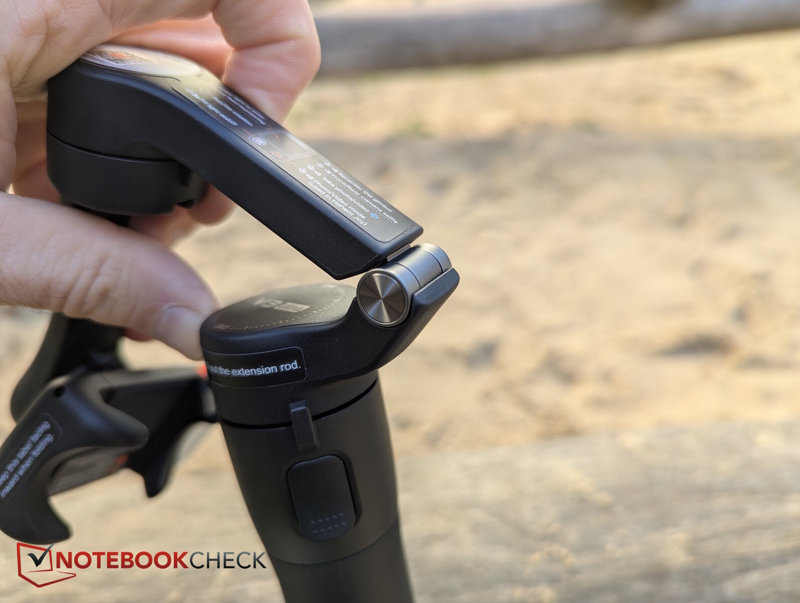 Ingeklapt is de gimbal aangenaam compact, maar met iets meer dan 400 g niet bepaald licht. De plastic behuizing voelt stevig en solide aan, mede dankzij dat gewicht.