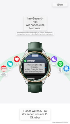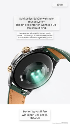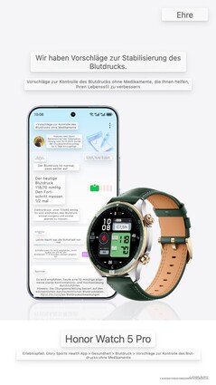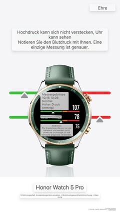 Nieuwe teaserafbeeldingen van Honor laten zien dat de smartwatch specifieke metingen uitvoert, waaronder een beoordeling of de bloeddruk te hoog of te laag is. De bijbehorende smartphone-app geeft tips om de bloeddruk te verhogen of te verlagen. Maar Honor gebruikt waarschijnlijk een optische PPG-sensor om de bloeddruk te bepalen, net als Samsung, dus gebruikers moeten deze metingen als benaderende waarden beschouwen.