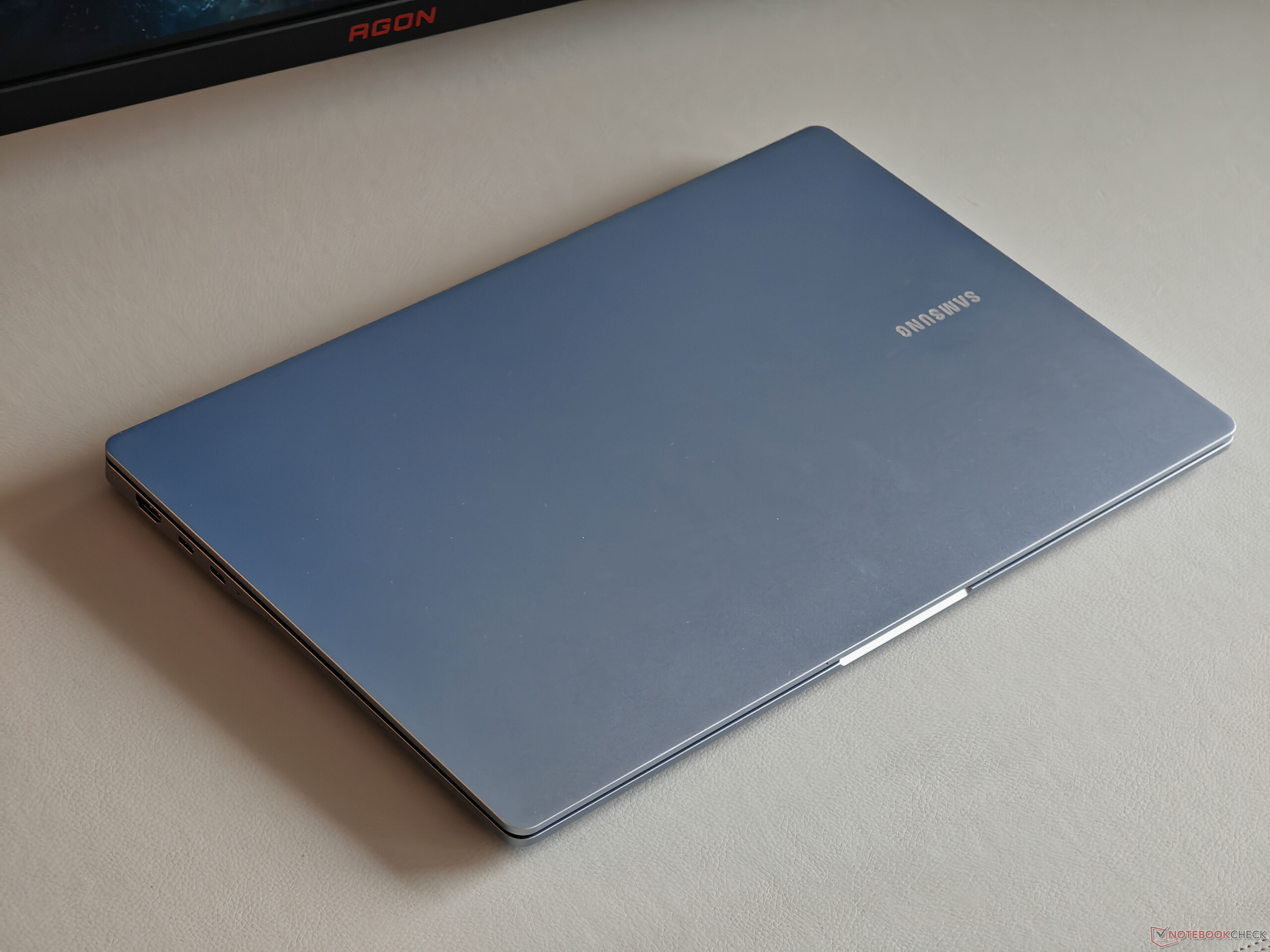 Samsung gebruikt een slanke metalen behuizing voor de Galaxy Book4 Edge, die 1,5 cm dik is en 1,49 kg weegt, waardoor hij gemakkelijk in elke rugzak past. De kleur van de behuizing is Sapphire Blue, een zeer lichte tint blauw (eerder zilver met een lichte blauwe tint). Visueel ziet de notebook er geweldig uit, en de kwaliteit is ook goed. Alleen het schermscharnier (max. openingshoek 180 graden) is een beetje te glad en wiebelt daarom een beetje. Het onderste deksel van de behuizing kan verwijderd worden (schroeven onder de rubberen voetjes), maar de onderhoudsmogelijkheden zijn beperkt tot het schoonmaken van de ventilator, de WLAN module en de batterij, die indien nodig vervangen kan worden.