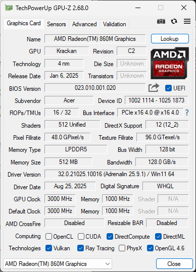 | Acer Swift Go 16 AI SFG16-61-R5Y5 Radeon 860M, Ryzen AI 7 350, Kingston OM8PGP41024Q-A0 | Lenovo Yoga Pro 9 16IAH G10 RTX 5060 GeForce RTX 5060 Laptop, Ultra 7 255H, WD PC SN7100S SDFPMSL-1T00-1101 | Dell 16 Plus Arc 140V, Core Ultra 7 256V | LG Gram Pro 16Z90TS-G.AU89G Arc 140V, Core Ultra 7 256V, Samsung PM9A1a MZVL21T0HDLU | MSI Prestige 16 AI Evo B2HMG Arc 140T, Ultra 9 285H, Micron 2500 1TB MTFDKBA1T0QGN | Acer Aspire 16 A16-51GM-77G2 GeForce RTX 2050 Mobile, Core 7 150U, WD PC SN740 SDDQNQD-1T00-1014 | |