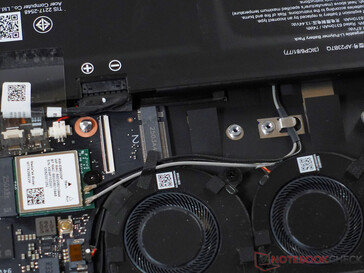 Het apparaat is EPEAT-geregistreerd en biedt een solide transparantie met betrekking tot de gevolgen voor het milieu door middel van een PCF-document (Product Carbon Footprint). Het feit dat het apparaat gemakkelijk toegankelijk en schoon te maken is, is een pluspunt. De behuizing is afneembaar, de SSD's en WLAN-modules zijn verwisselbaar, en er is een tweede M.2 SSD-sleuf verborgen onder de platte kabel die verbinding maakt met het subboard.