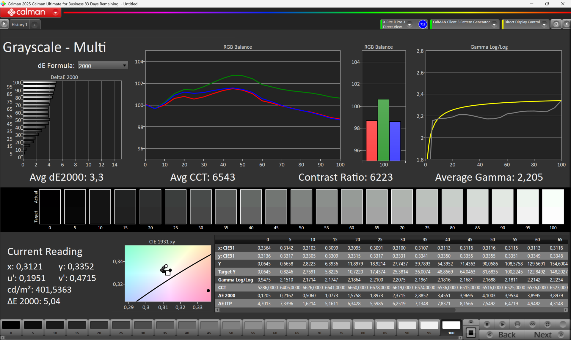 ΔE Greyscale Calman: 3.3 | ∀{0.09-98 Ø5}