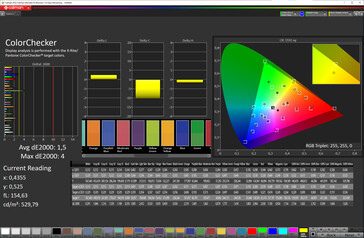 De helderheid van het HDR-gecertificeerde paneel is erg goed met een actieve helderheidssensor, maar concurrenten zoals de Galaxy S23 Ultra of Xiaomi 13 Ultrakunnen nog aanzienlijk helderder worden. Met een gelijkmatige verdeling van lichte en donkere gebieden (APL18) kan het OLED-paneel echter aanzienlijk helderder worden met maximaal 1.566 cd/m².