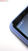 Door de iets bredere bezel aan de boven- en onderkant heeft de Xperia 10 IV geen uitsparing voor de selfiecamera nodig, zodat je het hele schermoppervlak kunt gebruiken. De selfiecamera is iets naar links geplaatst in het bovenste schermkader en valt zelfs op het tweede gezicht nauwelijks op.