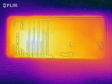 In onze test verwarmt de Sony smartphone onder belasting tot 42,8 °C (~109 °F). De smartphone voelt op dit punt al aanzienlijk warm aan, maar het wordt niet warm