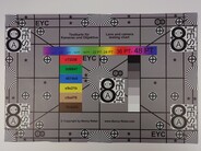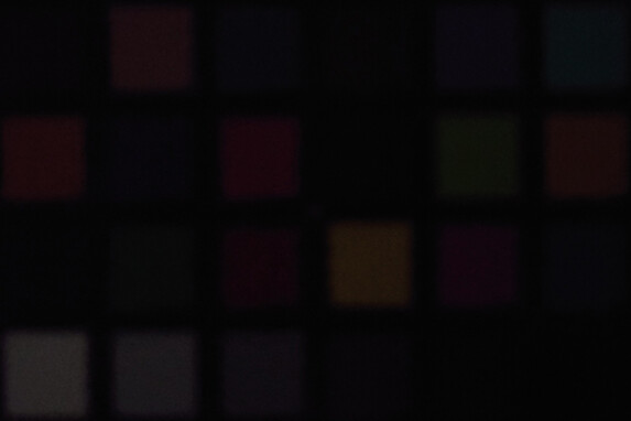 Het testbeeld ziet er aangenaam scherp uit en wordt alleen naar de randen toe zachter. Het is nog steeds mogelijk om details te onderscheiden in de foto genomen bij één lux, maar het beeld is erg ruw.