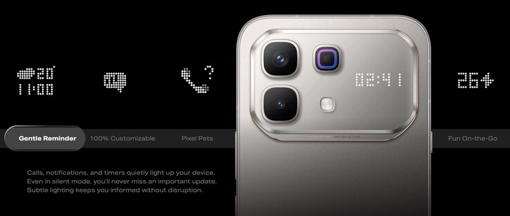 De behuizing heeft ook een paar unieke elementen. Ten eerste een programmeerbare actieknop die onder andere een AI-assistent kan starten of de camera-app kan openen. Ten tweede een dotmatrixdisplay in de cameramodule dat inkomende berichten kan aangeven, de tijd kan weergeven of een virtueel huisdier kan tonen. Tot slot is er een "gezondheidsmonitor" - wat lijkt op een sluitertoets van een camera is eigenlijk een hartslag- en SpO2-sensor. Om een meting te doen, hoeven gebruikers alleen maar hun vinger 30 seconden op deze sensor te leggen