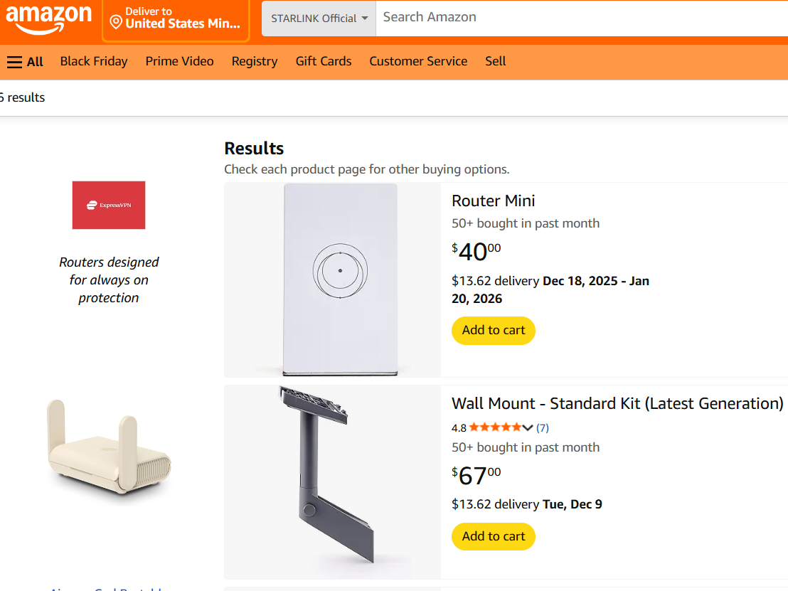 Klanten kunnen nu specifieke Starlink-accessoires, zoals de Wi-Fi-router, rechtstreeks op de site kopen, waarbij de meeste artikelen beschikbaar zijn voor levering via Prime overnight of één dag. Een beoordelingssite met de naam DISHYTech ontdekte de officieel uitziende Starlink winkel eerder deze maand en merkte op dat deze lijkt te werken via Virtual Supply. Deze in Oregon gevestigde derde distributeur verkoopt een verscheidenheid aan consumentenelektronica aan grote detailhandelaars en verkocht eerder de standaard Starlink schotel, wat suggereert dat er na verloop van tijd meer inventaris zou kunnen worden aangeboden.