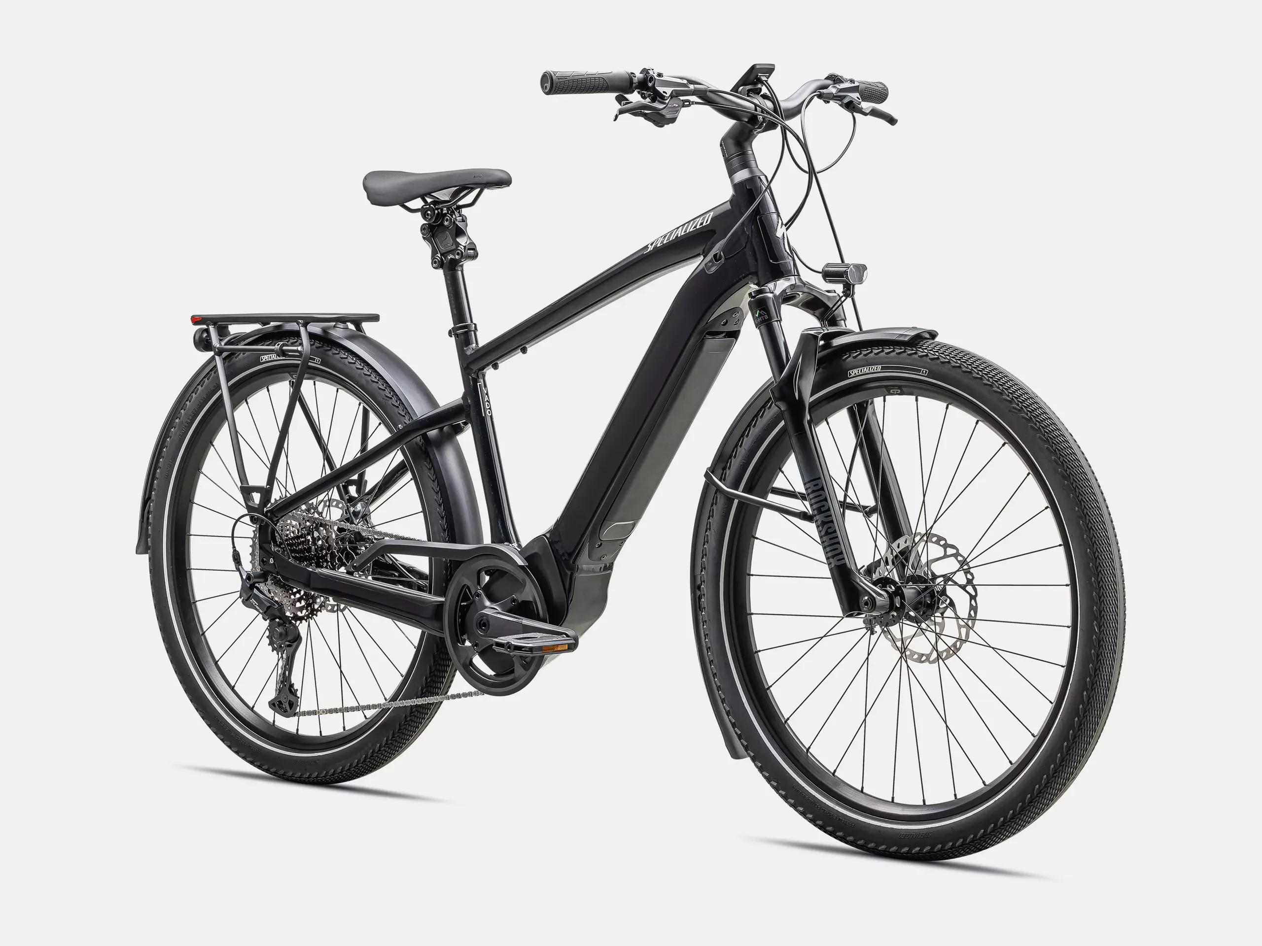 De motor van de Turbo Vado wordt vergezeld door een 710Wh accu, waarmee u tot 75 km (~120 mijl) met ondersteuning kunt rijden. Aan de voorkant van de Specialized elektrische fiets zit een verende voorvork met 80 mm veerweg, en een verende zadelpen draagt ook bij aan uw rijcomfort. Andere kenmerken zijn hydraulische schijfremmen, LED voor- en achterverlichting, een bagagedrager achter en een ingebouwd Vado anti-diefstal slot en alarm. Het MasterMind-display en de Specialized app kunnen gebruikt worden om de e-bike af te stellen en het resterende ondersteuningsbereik in te schatten.