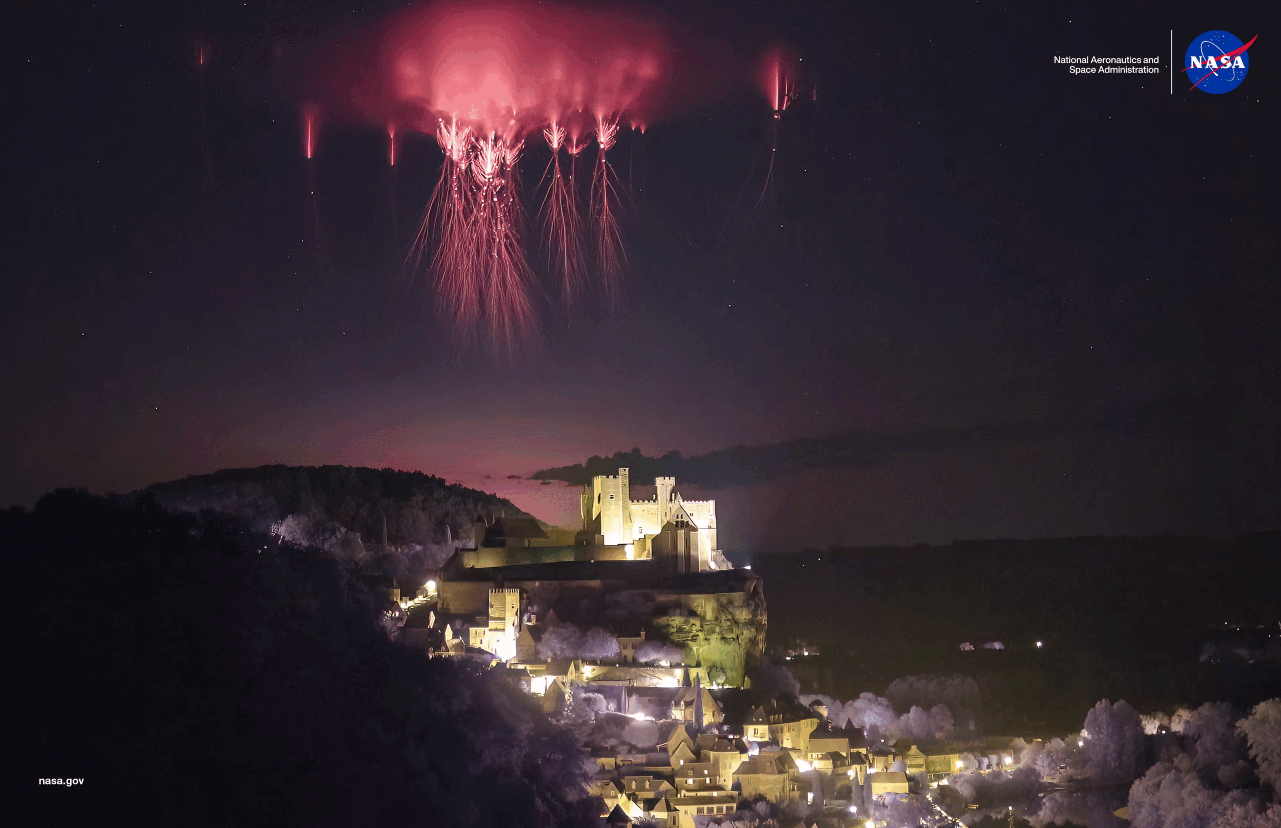 Sprites, zoals degene die boven het Château de Beynac te zien was, zijn de meest voorkomende TLE. Het zijn echter geen gebeurtenissen die u elke dag tegenkomt, omdat ze zo hoog in de atmosfeer voorkomen en zo kortstondig zijn. Ze doen zich voor op ongeveer 80 kilometer boven het aardoppervlak en duren slechts een paar milliseconden.
