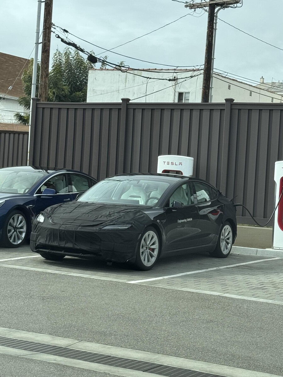 In het weekend is de vermoedelijke Model 3 Performance uit 2024 betrapt op het testen en opladen in Santa Monica in zijn typische bedekte camouflage. Hoge, witte kuipstoelen zijn duidelijk zichtbaar aan de binnenkant van het Model 3 Performance "engineering vehicle", zoals Tesla op de zijkanten heeft geschreven.