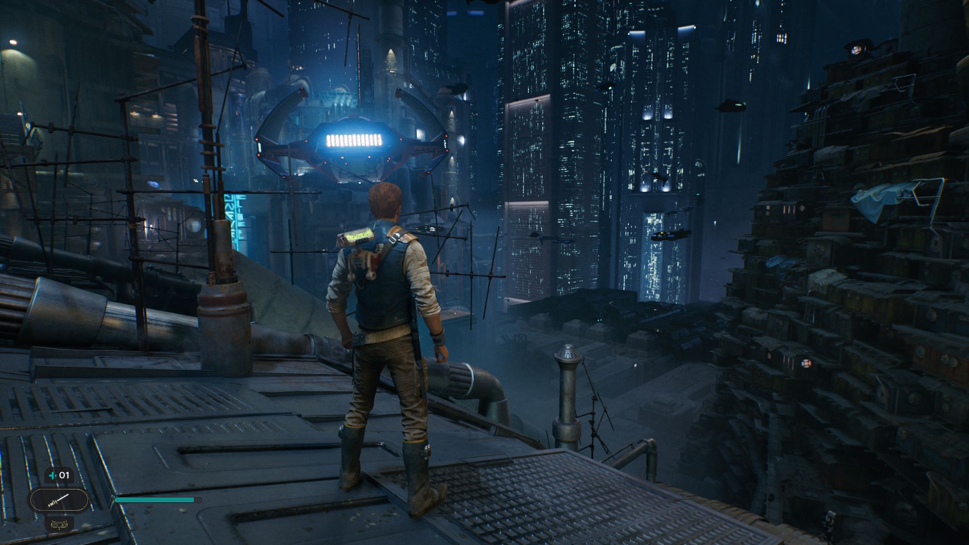 We gebruikten het begin van het spel voor onze snelheidsmetingen, waar de geboeide hoofdpersoon naar de plaatselijke slechterik op Coruscant wordt geleid. Met de tool CapFrameX namen we gedurende 30 seconden een vaste route op. Je kunt deze sequentie bekijken in de onderstaande video.