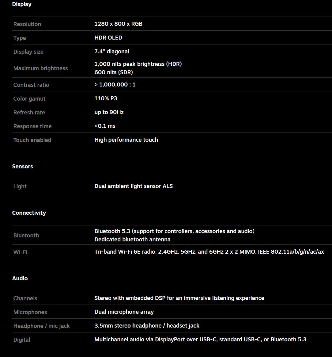 De belangrijkste upgrade van de Steam Deck OLED is het 7,4 inch 90 Hz paneel met dezelfde 1.200 x 800 resolutie. Het heeft een piekhelderheid van 1100 nits en dekt 110% van het DCI-P3 kleurengamma. De touchscreenfunctionaliteit is ingeschakeld met een geadverteerde responstijd van <0,1 ms. Andere verbeteringen zijn de toevoeging van Wi-Fi 6E en een grotere 50 Wh batterij. Dit laatste, in combinatie met de energiezuinigere APU, zou gebruikers in staat moeten stellen om er meer schermtijd uit te halen.