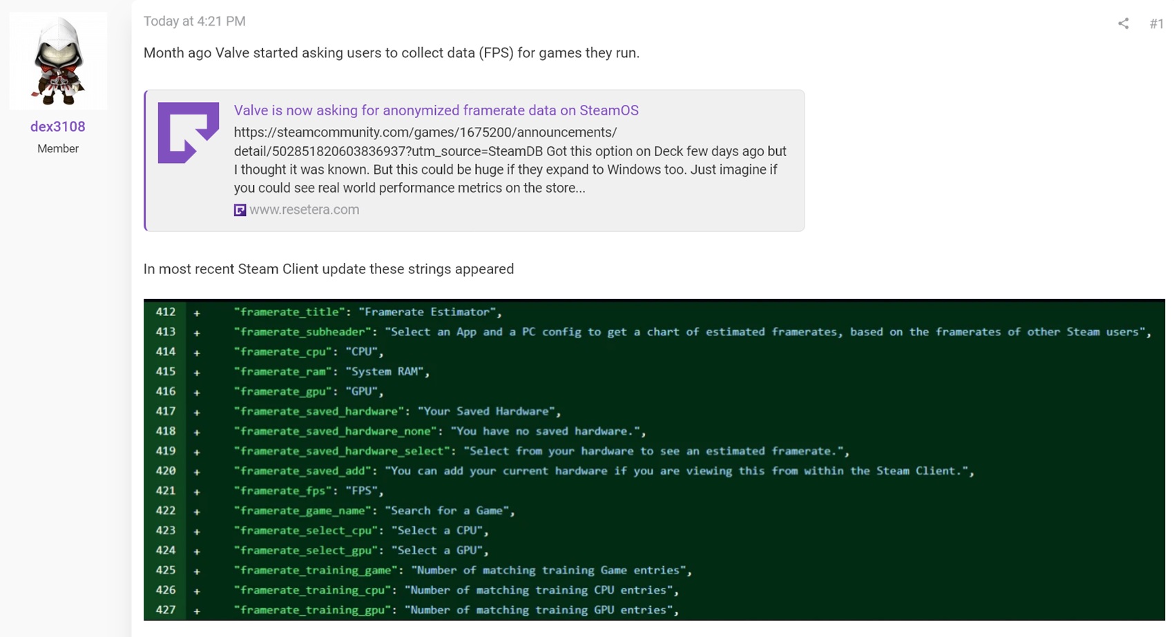 Dex3108 op de ResetEra forums een vreemde update opgemerkt in de code van de Steam-client. In één regel staat: "Selecteer een App en een PC-configuratie om een grafiek met geschatte framerates te krijgen, gebaseerd op de framerates van andere gebruikers." Het suggereert dat gamers hun specificaties kunnen invoeren, inclusief CPU, GPU en geheugencapaciteitom te zien hoe een spel zou kunnen draaien.