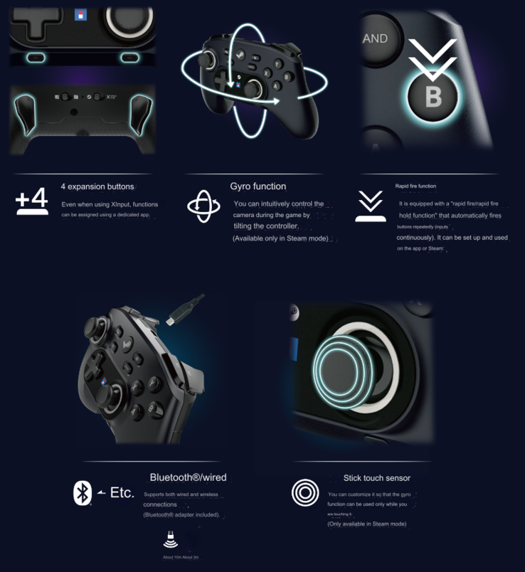De controller zelf is niet bepaald een opvolger van de originele Steam Controller. De Horipad heeft geen rumble en de kenmerkende trackpads. Maar hij heeft wel menuknoppen die overeenkomen met de Steam Deck. Net als de high-end controllers van Sony en Microsoftwordt deze geleverd met programmeerbare knoppen.