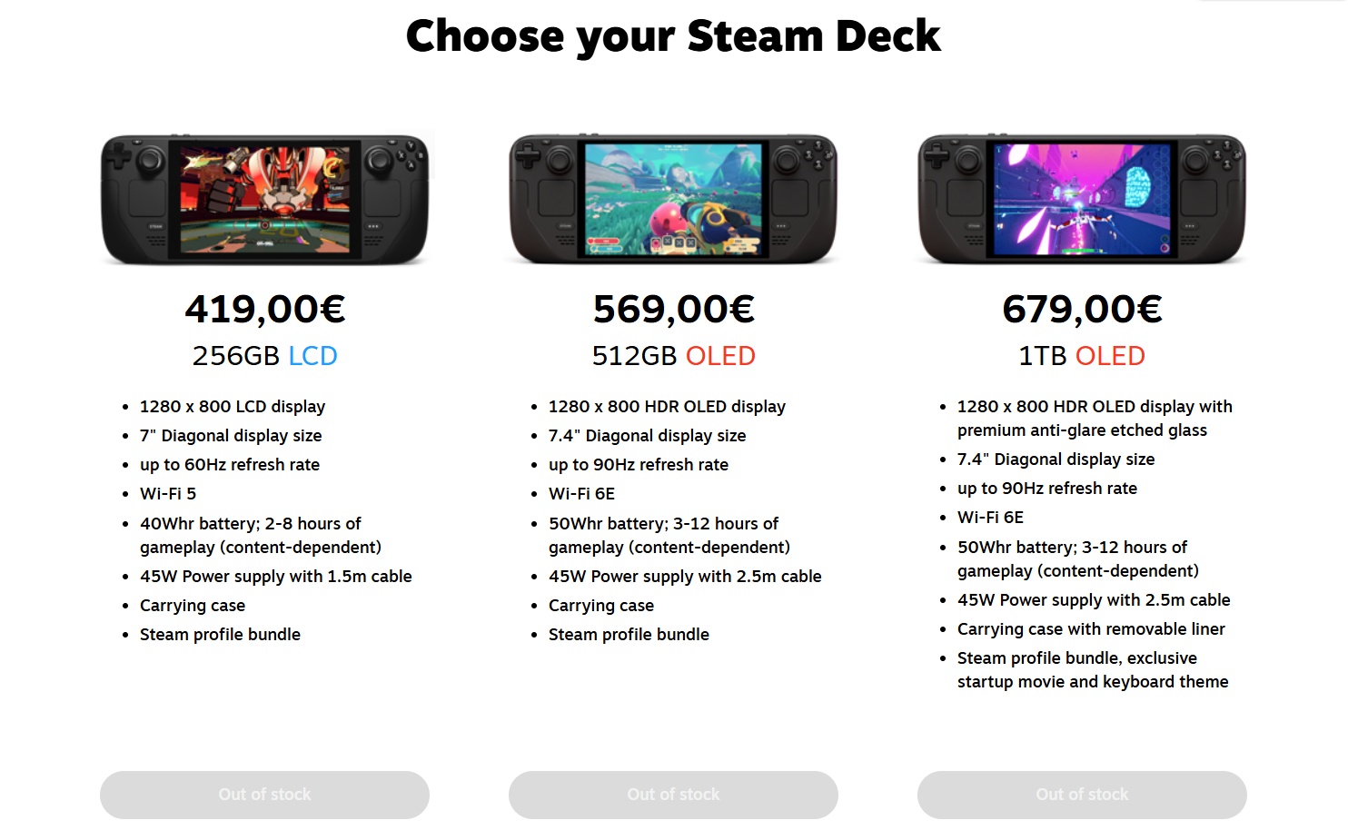 Er is één belangrijk voorbehoud: de LCD-versie van het Steam Deck is niet langer in productiewat verklaart waarom dat model bijna overal niet op voorraad is. De bredere beschikbaarheidsproblemen hebben echter ook invloed op de huidige line-up.