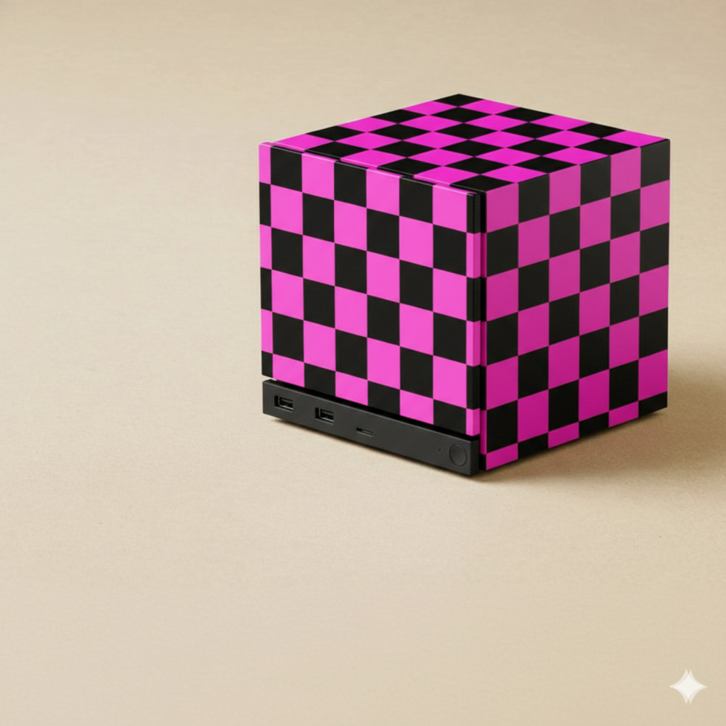 Een pixelkunst Minecraft-wrap verandert de kubus in een enkel blok van de spelwereld. Het ziet er zowel goed uit als is praktisch: de lage-resolutie textuur leest eigenlijk best goed op een plat oppervlak en houdt de kubus leesbaar op een afstand. Dit concept suggereert dat franchises met sterke ontwerptalen ook echt officiële skins zouden kunnen leveren die mensen zouden kopen, en niet alleen maar voor de lol namaken. Dit voelt aan als een gemakkelijke overwinning voor een skinmaker van derden.