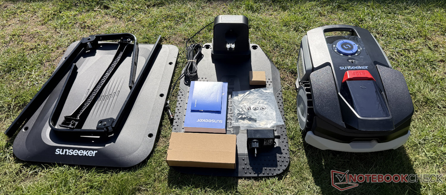 Sunseeker belooft een bijzonder eenvoudige bediening. Dit begint met de installatie. Het laadstation en het dak moeten op een geschikte plaats aan de rand van het gazon worden geplaatst en met de meegeleverde grondschroeven aan de grond worden bevestigd. De stroomkabel moet ook in een stopcontact gestoken worden.