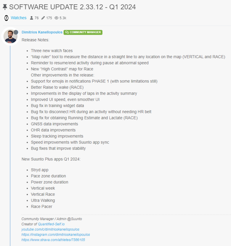 Updateversie 2.33.12 wordt OTA uitgerold naar de Suunto Vertical, Race en 9 Peak Pro smartwatches in een automatische push naar uw horloge. De software wordt 's nachts geïnstalleerd als uw horloge meer dan 50% batterij heeft. Als u de update handmatig wilt installeren, kunt u dit doen door naar Instellingen > Algemeen te gaan en Software-update te selecteren. In een bericht op het forum suggereerde een lid van het Suunto-team dat het bedrijf streeft naar kwartaalreleases in 2024, hoewel dit afhangt van het feit of het werk volgens schema verloopt.