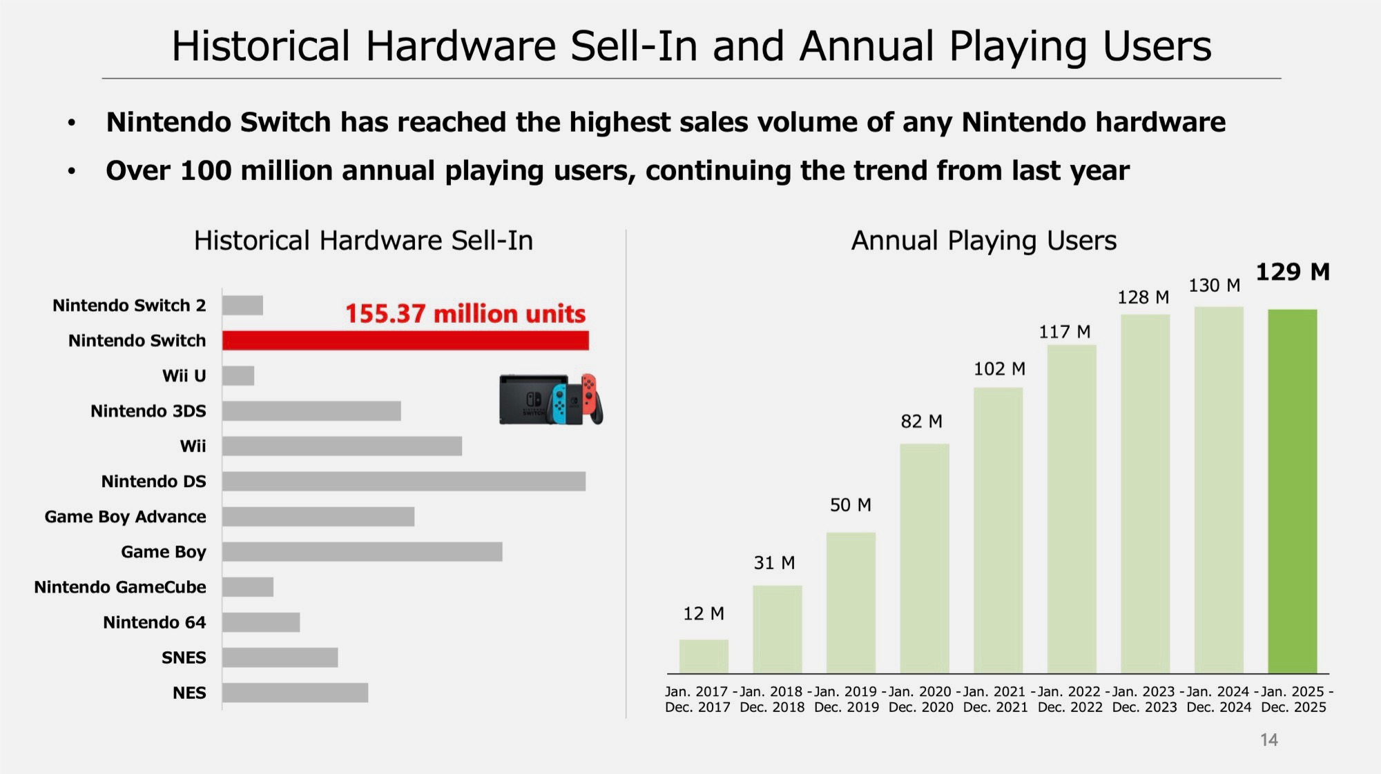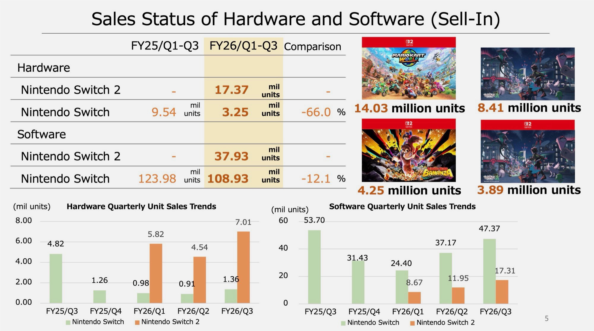 Ondanks het feit dat de originele Switch een last-gen console is, wist deze toch 3,25 miljoen exemplaren te verkopen - een daling van 66% ten opzichte van dezelfde periode vorig jaar. Nintendo verkocht in totaal 146,9 miljoen games, waarvan er 37,93 miljoen speciaal voor de Switch 2 waren geoptimaliseerd.