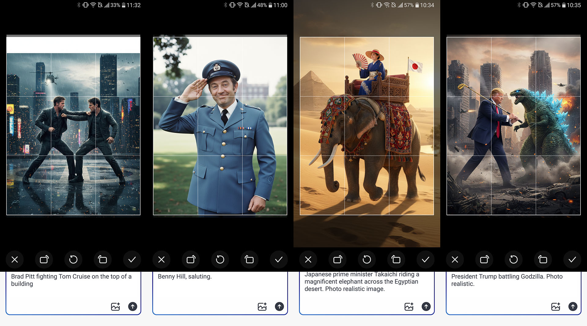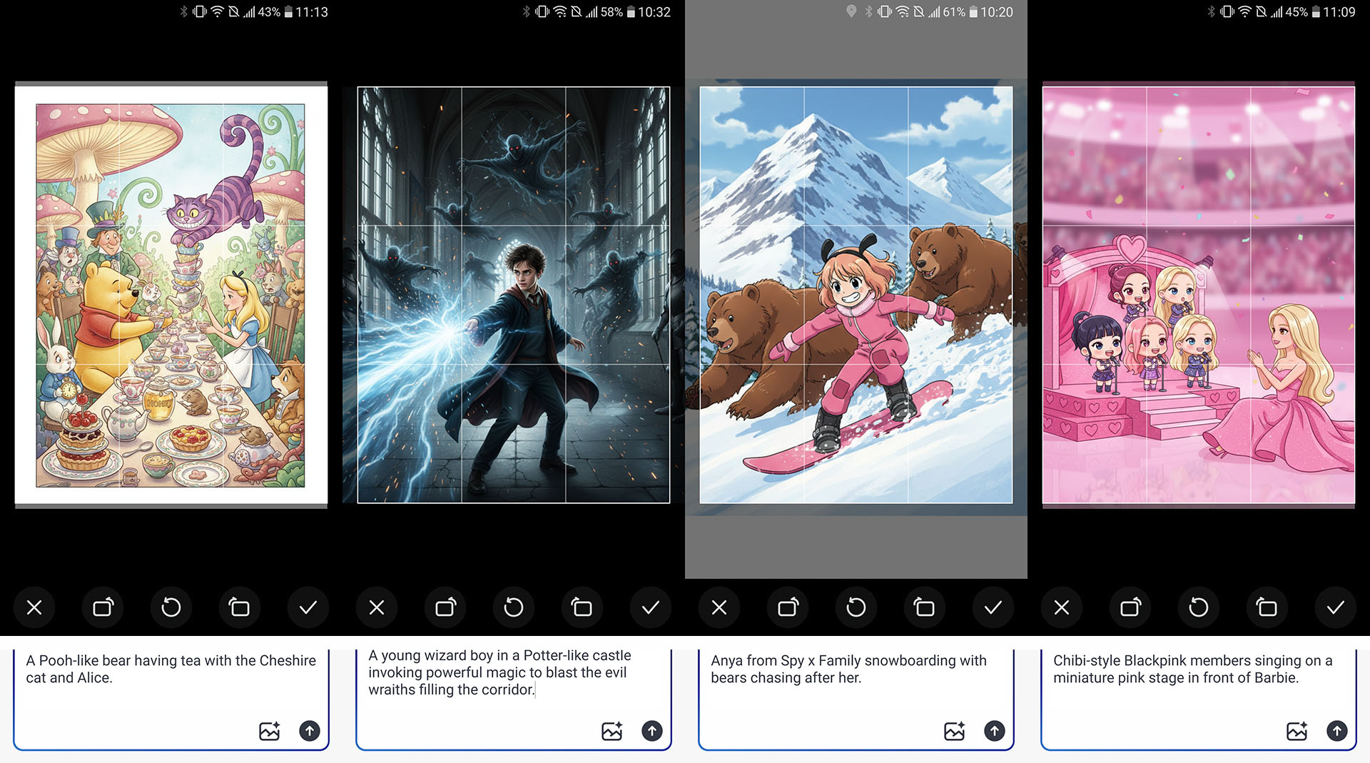 De AI is slecht in het genereren van feitelijk correcte tekst, kaarten en kalenders, redelijk betrouwbaar in het maken van to-do lijsten en menu's, af en toe onbetrouwbaar in het maken van bekende figuren, en heel behoorlijk in het maken van cartoonachtige kunst, ontspannende natuurscènes of een menigte schattige golden retrievers. Er kunnen hallucinaties optreden tijdens het prompt genereren van kunst, zoals een trein die over een rivier rijdt of een onjuist voorwerp dat wordt weergegeven.