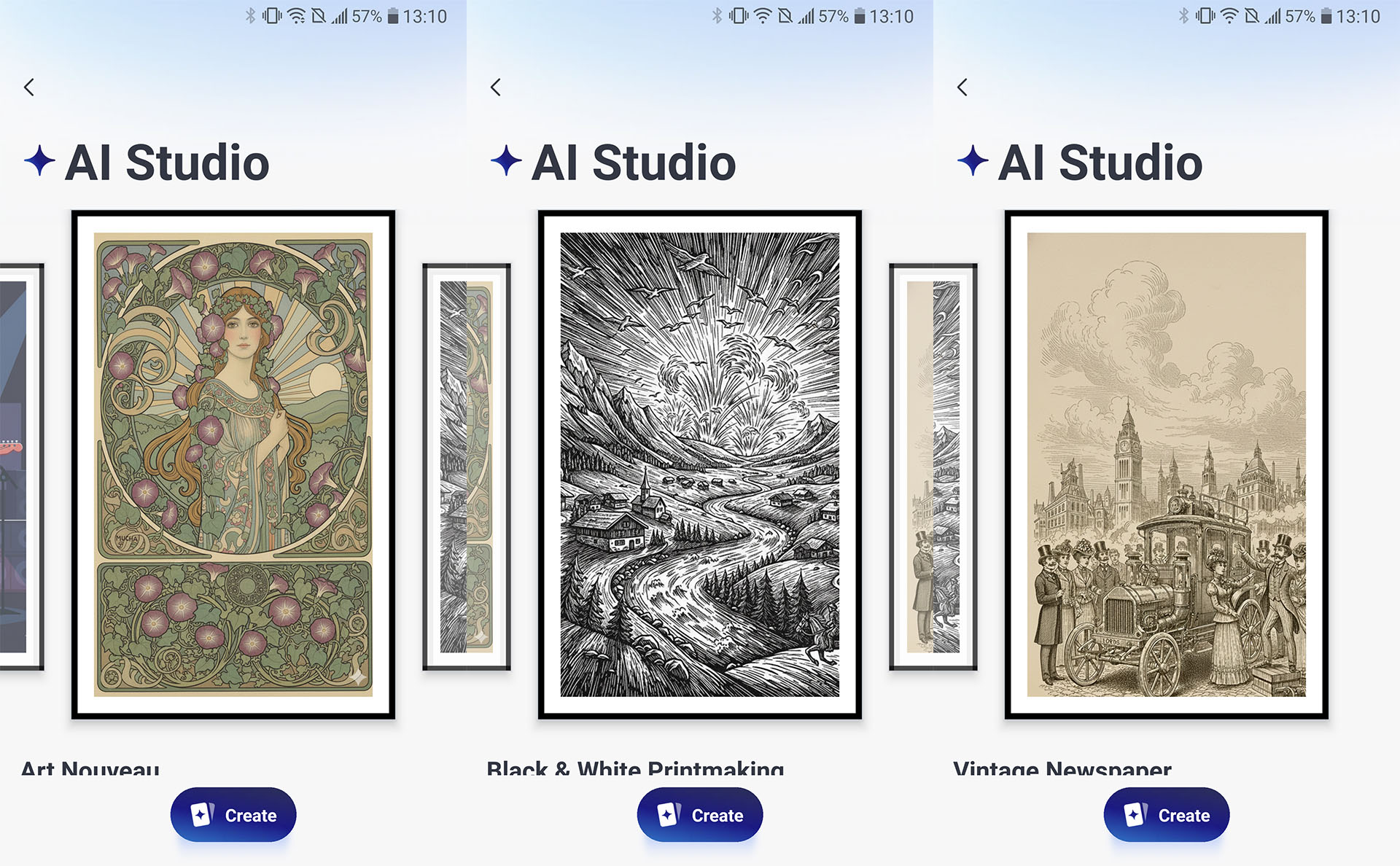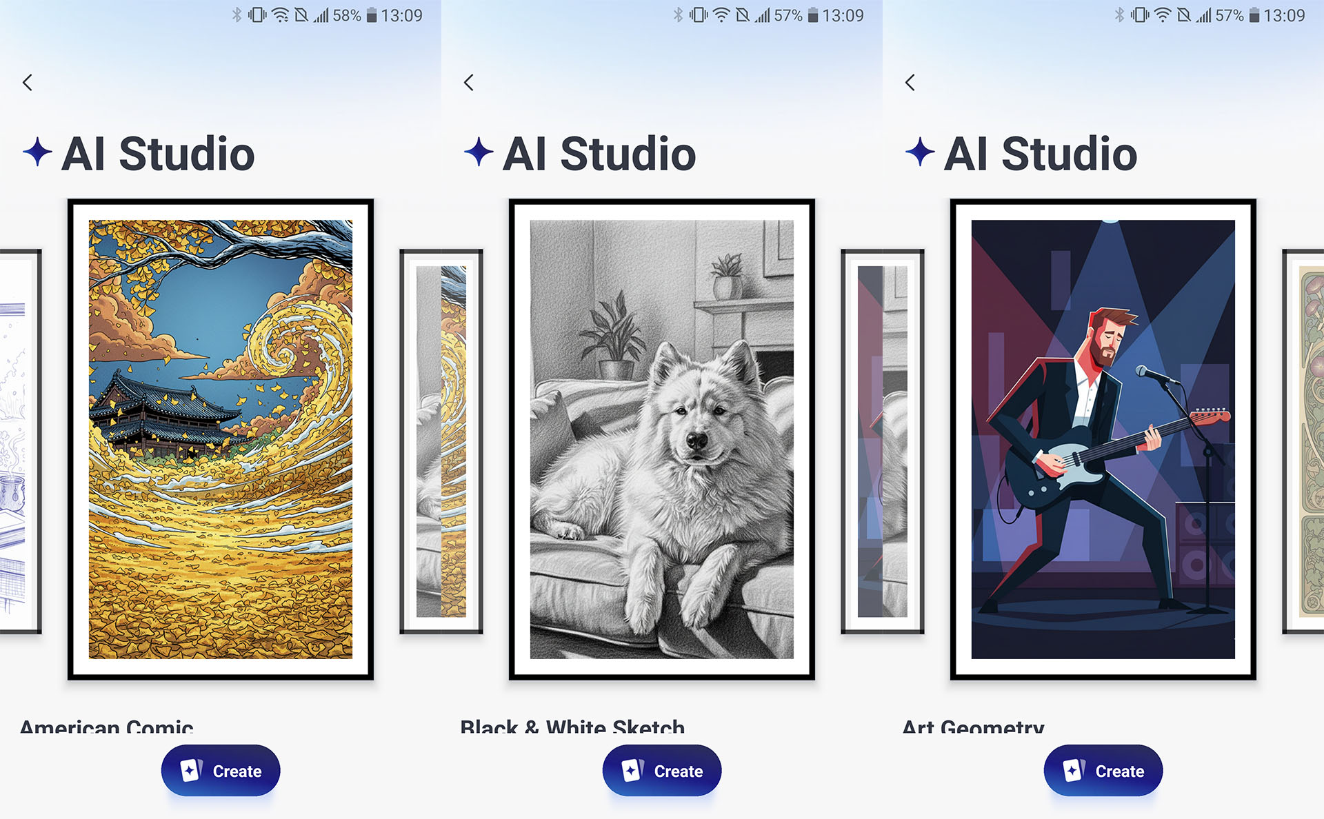 De AI Studio kan automatisch kunst creëren in 11 verschillende kunststijlen of gebruikers kunnen de AI naar eigen wens instellen. Een abonnement van $3,99 per maand is vereist om deze functies te gebruiken, waarbij de facturering via de app stores verloopt.