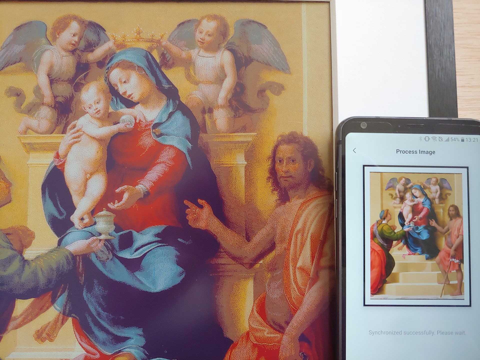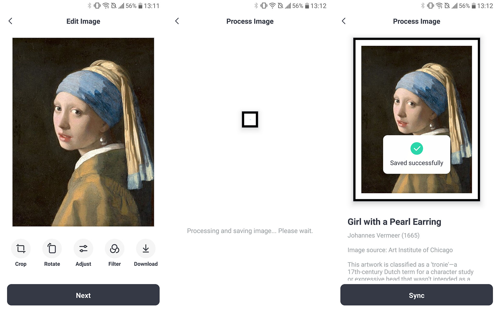 Persoonlijke afbeeldingen en gratis klassieke kunstwerken kunnen bewerkt en vervolgens binnen een minuut geüpload worden, waarbij de weergegeven afbeelding meerdere keren knippert en omkeert. Er kunnen tot tien afbeeldingen in het kunstframe worden opgeslagen voor getimede diavoorstellingen.
