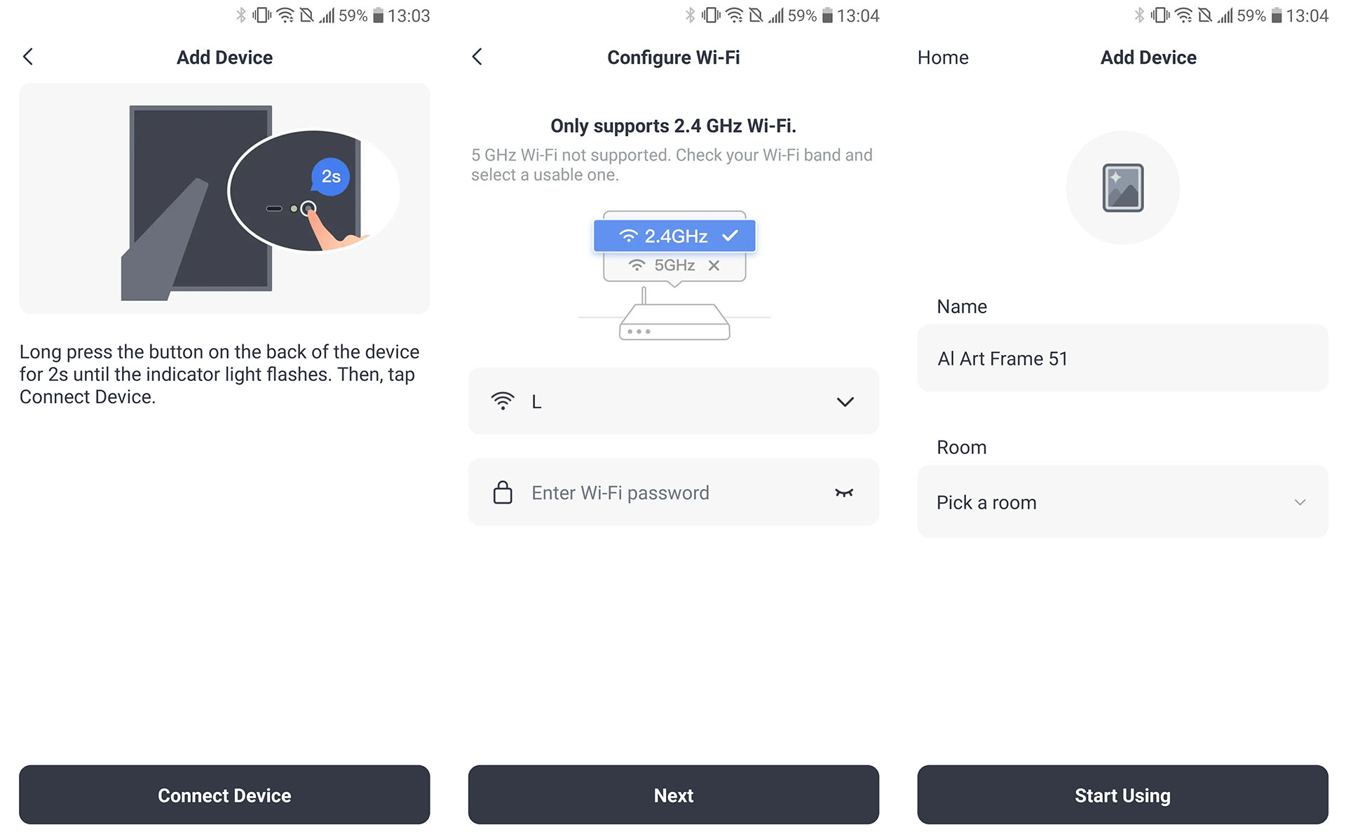 Het kunstframe vereist Bluetooth- en Wi-Fi-verbindingen, samen met de app, voor de installatie, waardoor het niet gebruikt kan worden in een afgelegen hut, boot of ander gebied zonder Wi-Fi.
