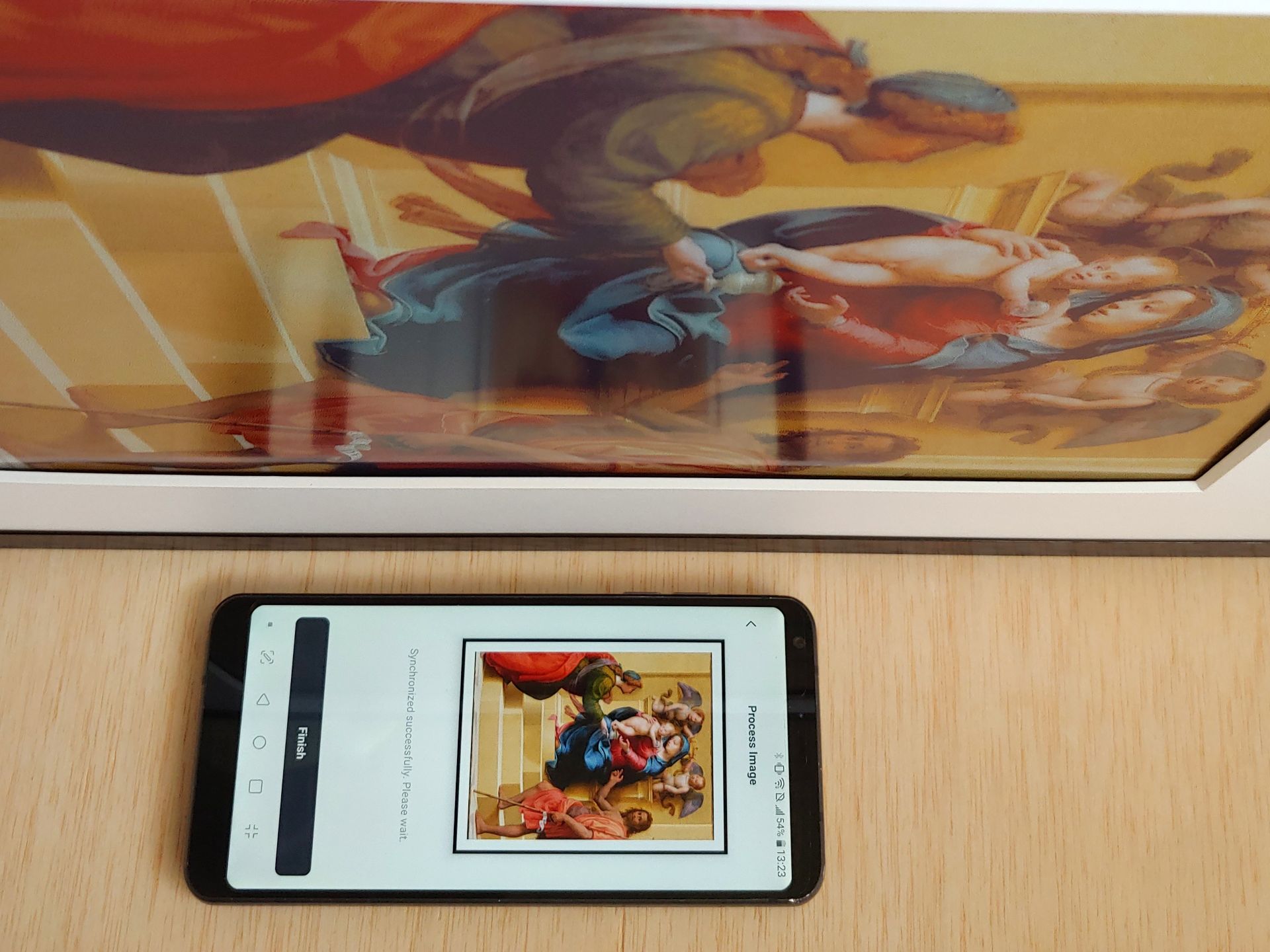 De software is eenvoudig te installeren, en om het kunstframe toe te voegen hoeft u alleen maar op de bedieningsknop achterop te drukken om de koppelmodus te activeren.