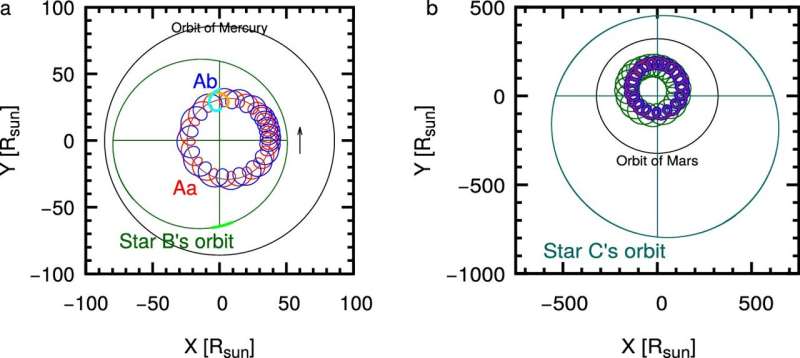 De meest massieve ster in dit systeem heet Aa, en is massiever en heter dan de Zon. Dit is ook het geval voor de andere twee hemellichamen die zich in de buurt bevinden. Maar de ster C heeft een massa en temperatuur die vergelijkbaar zijn met die van de Zon, en zijn omlooptijd is 1.046 dagen. Deze ontdekking is dus een wereldprimeur en zou wetenschappers in staat kunnen stellen om soortgelijke systemen in het heelal te ontdekken.