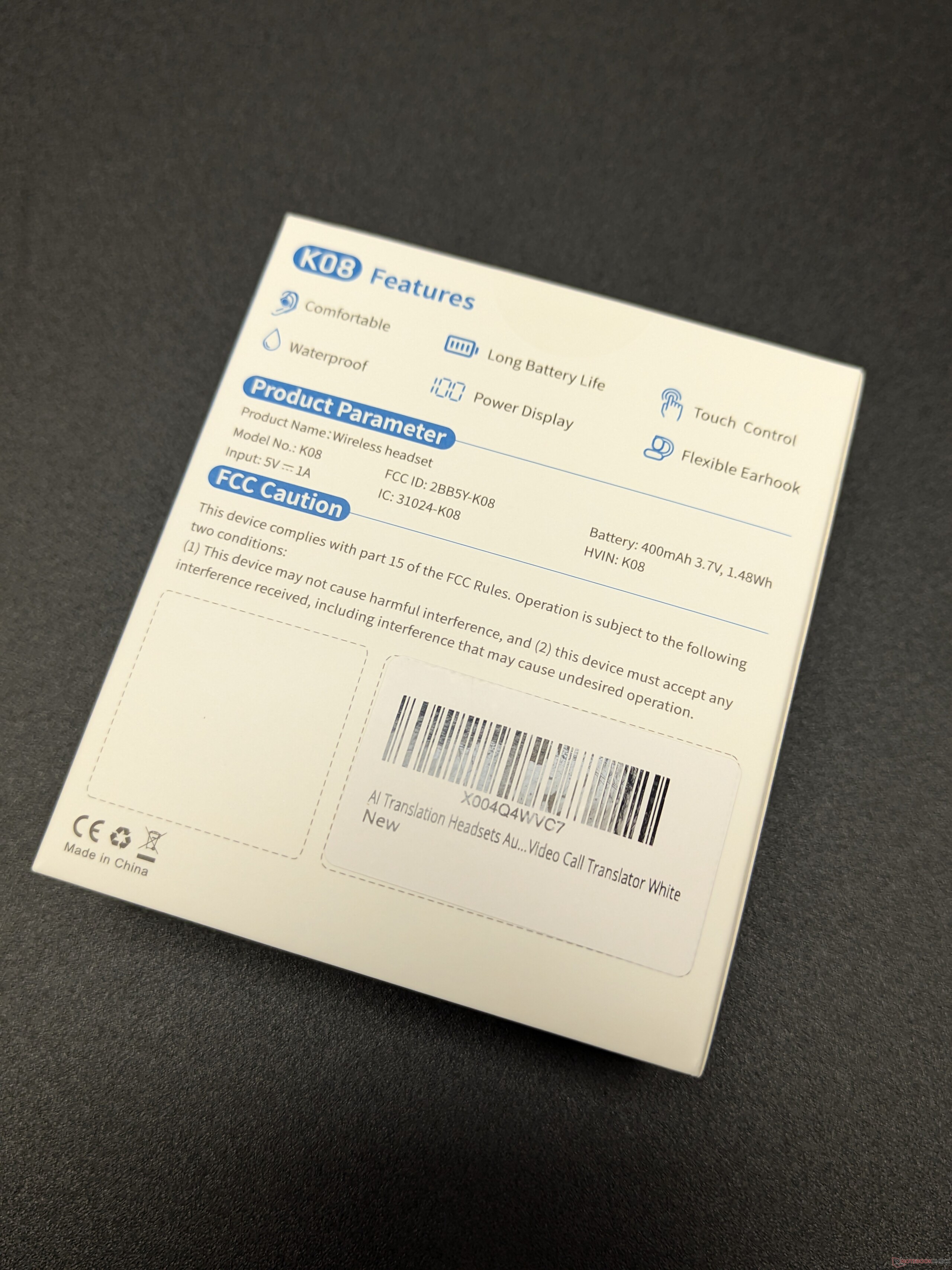 Net als bij andere budget audio-accessoires is het uitpakken heel eenvoudig. Het apparaat wordt geleverd met een oplaaddoosje, instructies en een USB-kabel. De nadruk ligt meteen op de bijbehorende app, die nodig is om de vertaalfunctionaliteit van de K08 te ontgrendelen.