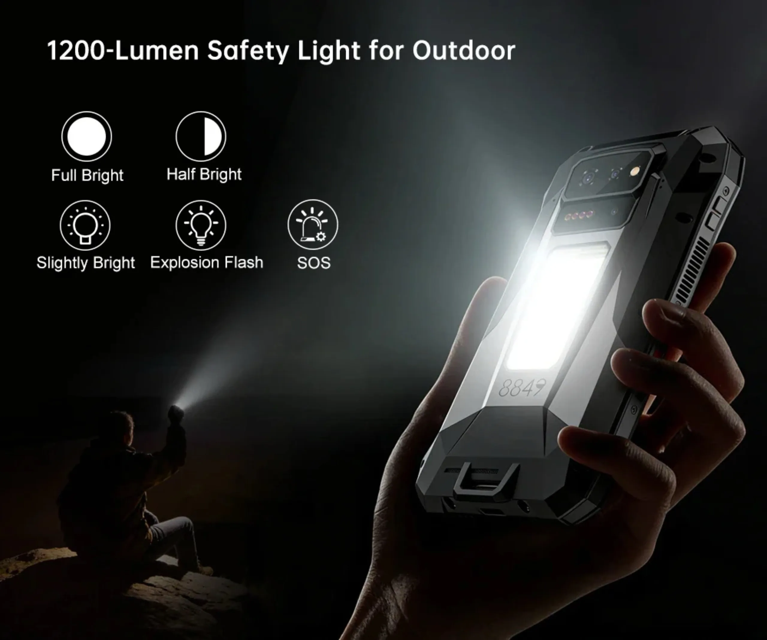 Daarnaast zijn de specificaties in lijn met typische middenklasse smartphones, waaronder een 50MP hoofdcamera met een 1/1.56-inch sensor, een 8MP telefoto camera met 3x optische zoom, een 50MP selfie camera, FM radio, GPS en NFC modules. 8849 heeft verder gekozen voor de MediaTek Dimensity 8200 met 16GB RAM en 512GB opslag. De smartphone is 1,26 inch dik, weegt 1,65 lbs en heeft een 6,78 inch IPS-scherm met een vernieuwingsfrequentie van 120Hz, een resolutie van 1080p+ en een helderheid van 750 nits.